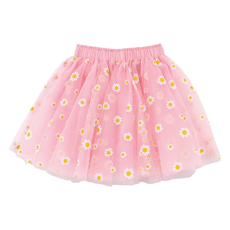 Brighten up any outfit with this charming Daisy Print Tulle Skirt. Featuring delicate white daisies scattered across a soft pink backdrop, this skirt exudes a cheerful, spring-like vibe. Made with lightweight tulle, it adds a touch of fun and flounce to your little one's wardrobe. The elastic waistband ensures a comfortable and secure fit, perfect for both playtime and special occasions. A versatile and cute piece for any young fashionista who loves floral designs.
