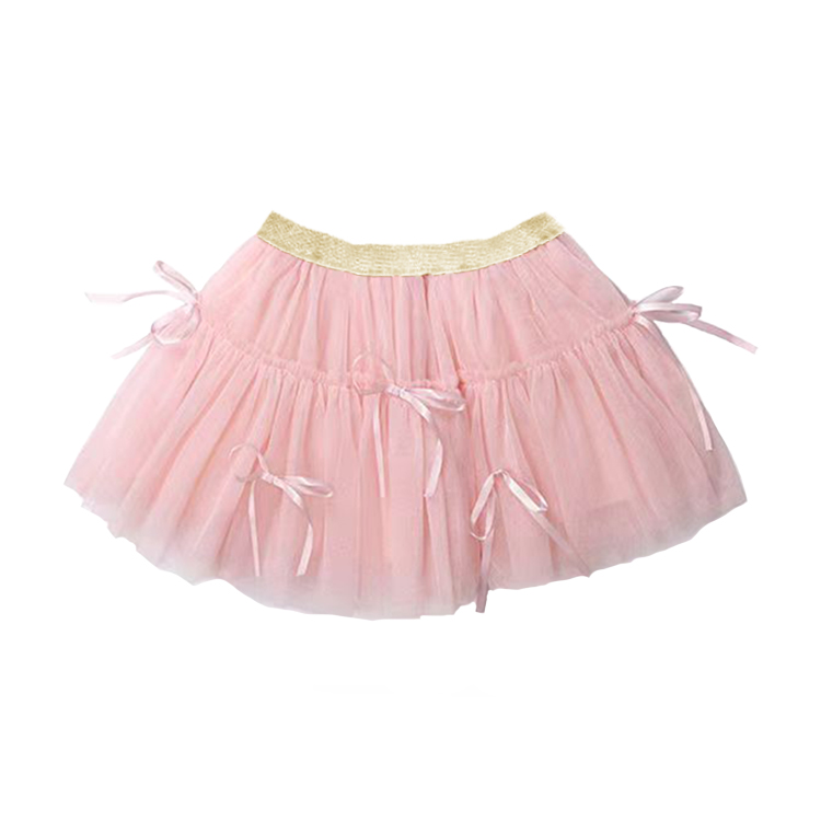 Graceful and sweet, this pink tulle skirt is adorned with dainty satin ribbon bows for a soft and charming look. The skirt features layers of airy tulle gathered to perfection and a sparkly gold elastic waistband for a touch of shine. Ideal for dressy occasions or everyday princess play, this skirt is as lovely as it is comfortable.