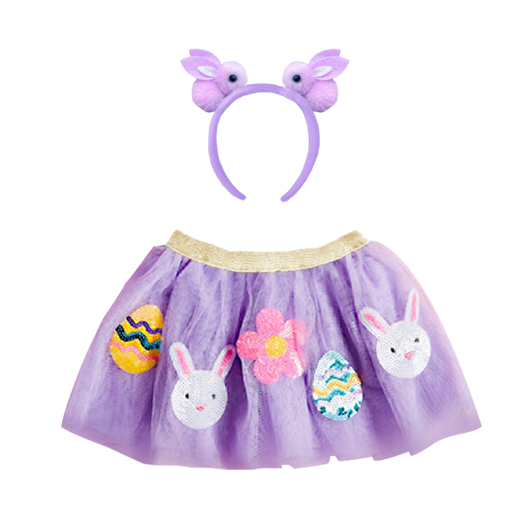 13003-Easter Bunny Tutu Skirt & Headband Set – Purple