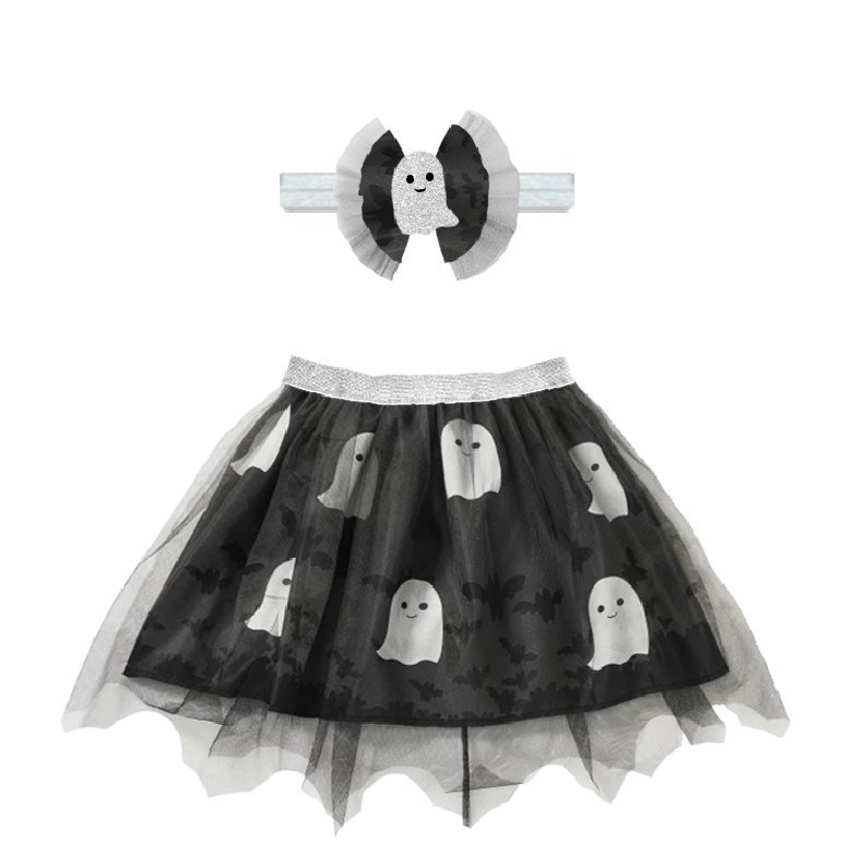 2-piece set: ghost bow headband and ghost-printed tutu