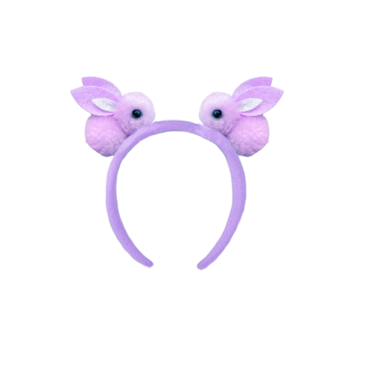 This adorable Plush Bunny Ear Headband brings a soft and playful charm to any outfit. Featuring lavender-colored pom-poms styled into sweet little bunny faces with floppy ears and beady eyes, this headband is perfect for kids who love fun and cuddly accessories. Comfortable for all-day wear and irresistibly cute!