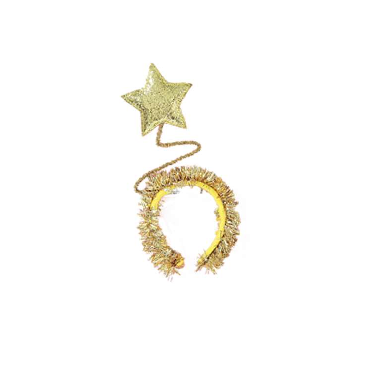 The Golden Star Tinsel Headband is a dazzling accessory designed to add a touch of glamour and festivity to any outfit. Featuring a flexible, comfortable headband base adorned with shimmering golden tinsel, this piece is topped with a sparkling golden star that dangles elegantly. Perfect for those who want to stand out at celebrations, this headband combines style and comfort effortlessly.
