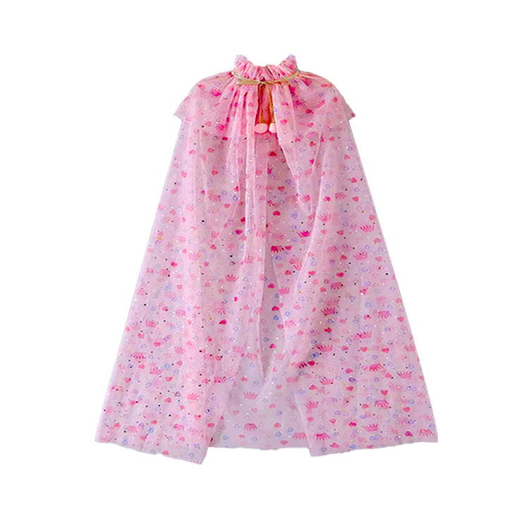 41016-Pink Princess - style Tulle Cape with Crown and Heart Patterns
