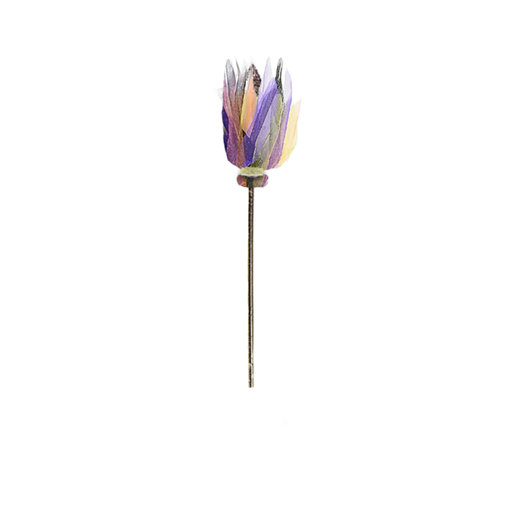 This magical wand features layered tulle petals in soft pastel shades of purple, pink, yellow, and black, forming a blooming flame-like tip. Mounted on a slim stick wrapped in metallic finish, this wand adds playful elegance to any costume. Perfect for little witches and fairies who want to enchant with color and charm.